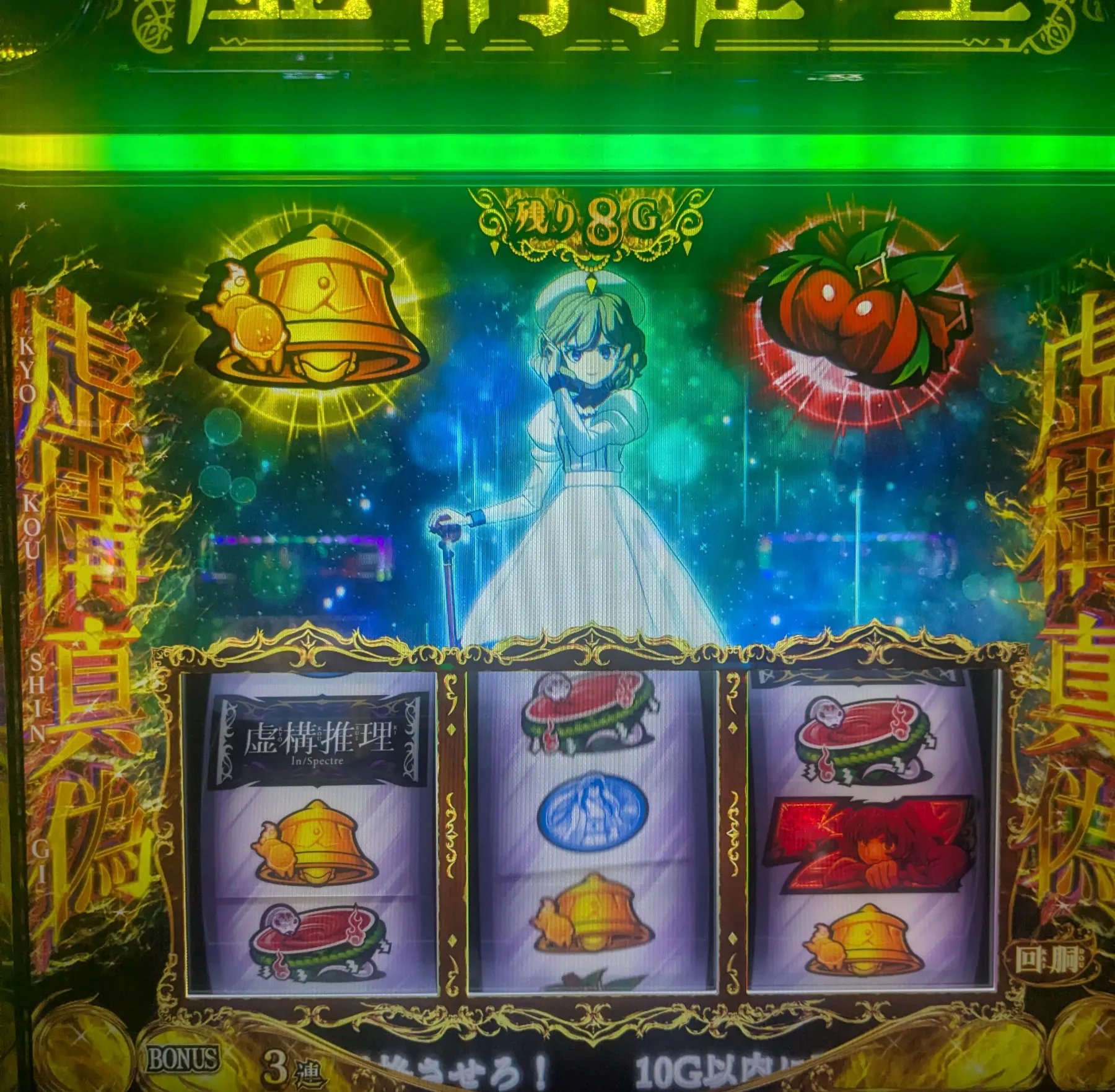 初当たり消化後は虚構連モードに必ず突入。ショート(56%)/ミドル(81%)/ロング(95%)の概念あり。SBJのイメージに近く、当選すると報酬決定ゾーン(虚構真偽)へ。
